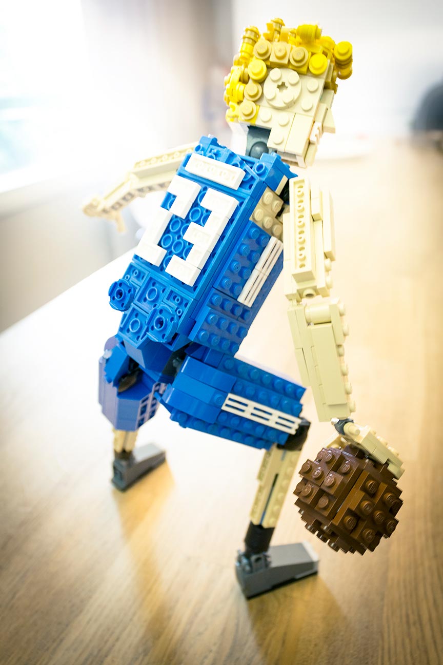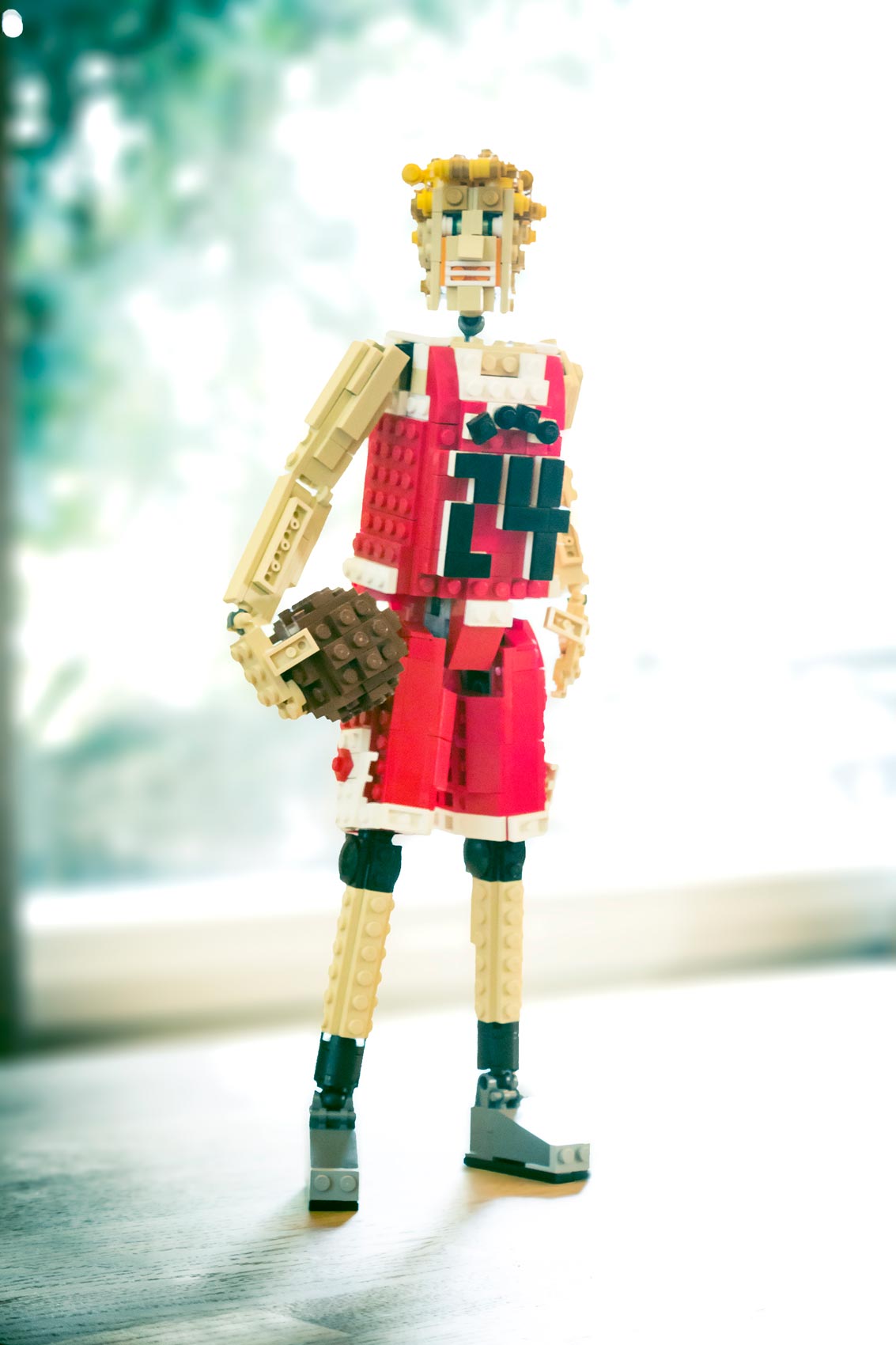 Lego-figuuri Lauri Markkasesta. Figuuri on mahdollista asettaa eri asentoihin monipuolisten nivellysten ansiosta. Lauri esiintyy myös kahdessa eri peliasussa - Chicago Bulls:n ja Susijengin.